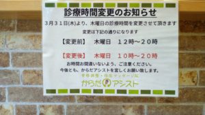 来週の木曜日、3月31日(木)から、木曜日の診療時間が変更となります!