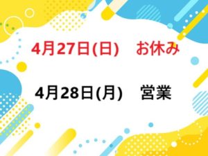4月28日(月)は営業致します!