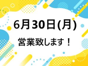 普段定休日にしている月曜日なのですが、、今度の6月30日(月)は営業致します!
