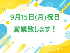 連休最後の15日(月)敬老の日は営業致します!(^^)!