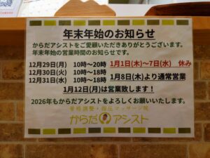 2026年もからだアシストをどうぞよろしくお願い致します。